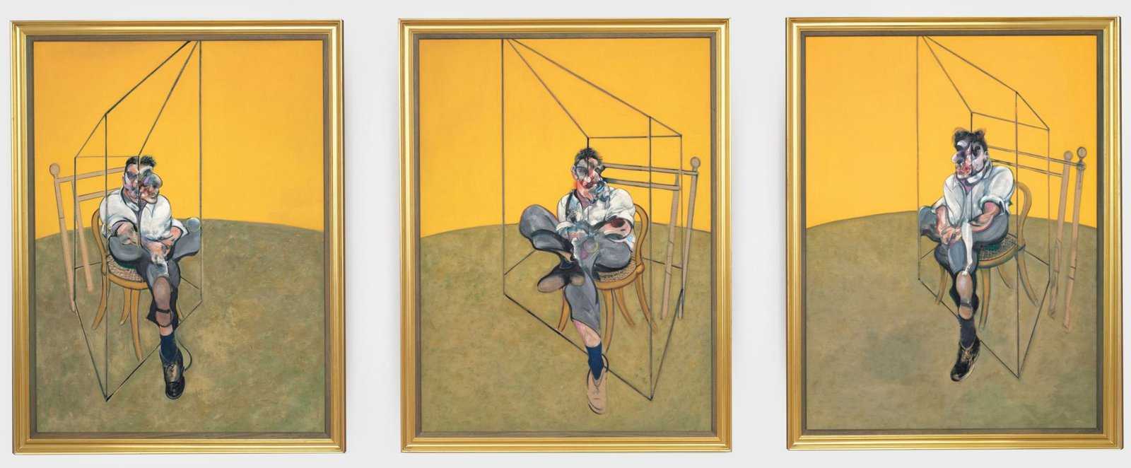 Триптих английского художника-экспрессиониста изображает сидящего на стуле в разных позах художника Люсьена Фрейда. Бэкон и Фрейд познакомились в 1945 году, вскоре стали близкими друзьями и часто рисовали друг друга на своих картинах.