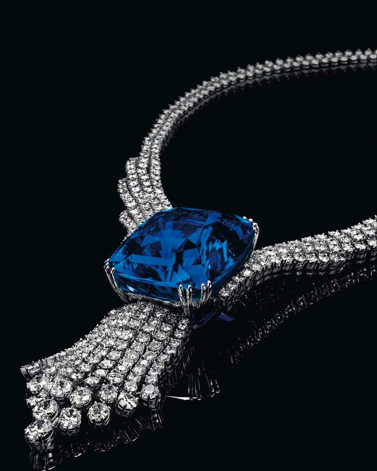Ожерелье украшает необработанный сапфир огранки кушон весом 392,52 карата, который подвешен на бриллиантовой кисточке и закреплен на колье из белого золота и бриллиантов. Этот невероятно редкий сапфир считается одним из самых престижных драгоценных камней, какие только можно купить за деньги.