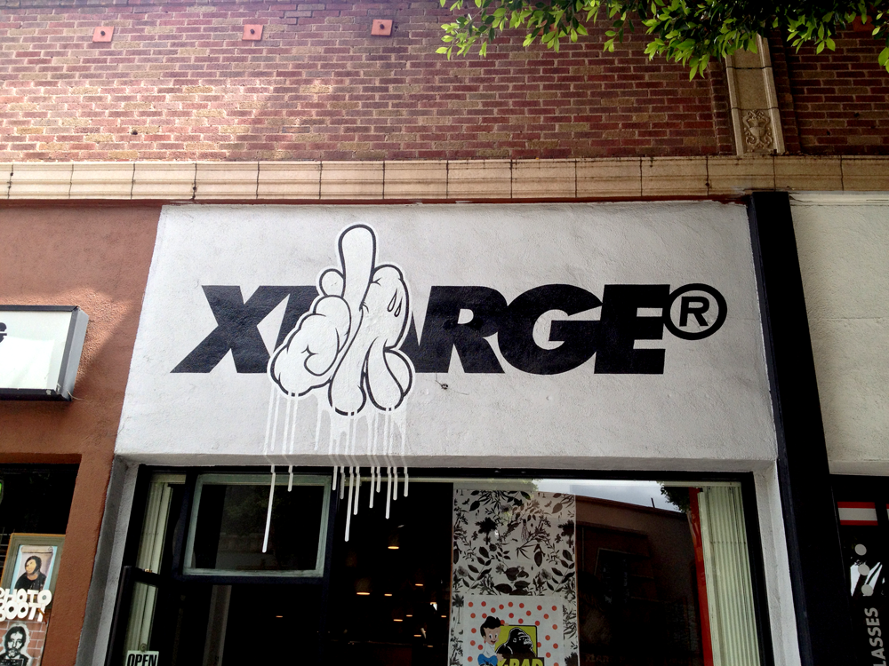 Первая линейка собственной продукции XLarge состояла из головных уборов и футболок. Футболки изготавливались по предельно простой технологии: трафаретная печать поверх уже готовых футболок от бренда Hanes. Такие изделия с удовольствием разбирали представители сформировавшегося вокруг магазина субкультурного сообщества: скейтеры, граффитчики, музыканты и дизайнеры. Моделью для первого печатного каталога XLarge стал харизматичный пожилой мужчина, которого Эли и Адам выцепили прямо на улице.