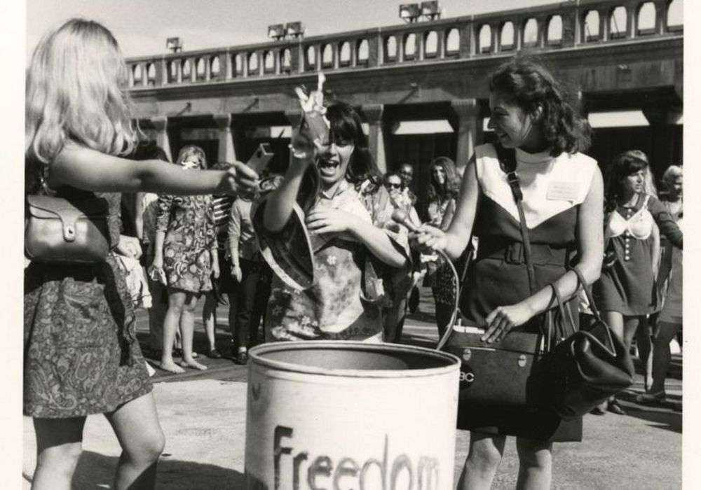 В 1968 году феминистки в Атлантик-сити провели одну из первых в истории громких акций протеста против конкурса красоты «Мисс Америка». Протестующие женщины выбрасывали в символическое мусорное ведро бюстгальтеры, туфли на каблуках, косметику, сковородки и глянцевые журналы.
