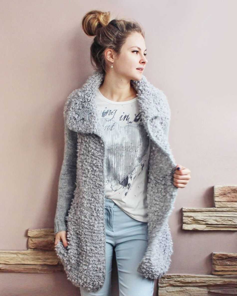 Хорошо подходят для этого объемные свитера. Свитера можно сочетать с лосинами, джинсами скинни и гетрами. Такой образ сразу превратит вас из тетки в халате в милую девушку, о которой хочется заботиться.