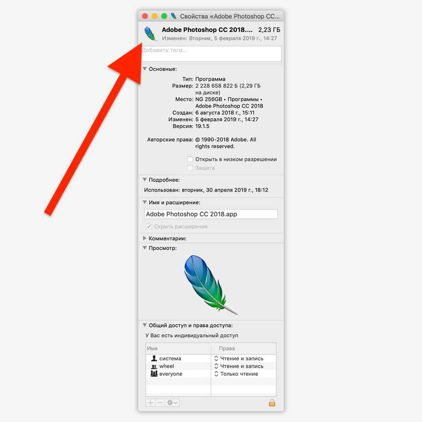 Скопируйте всю или часть картинки из любого графического редактора, откройте «Свойства» программы или папки, выделите её иконку и вставьте через ⌘Command + V