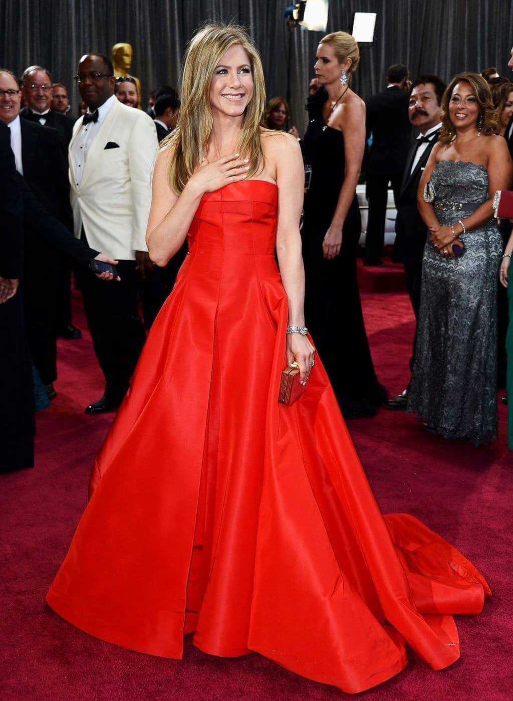Дженнифер носит не только пастельные оттенки. Ее красные платья часто становятся шедеврами, о которых «кричат» таблоиды.