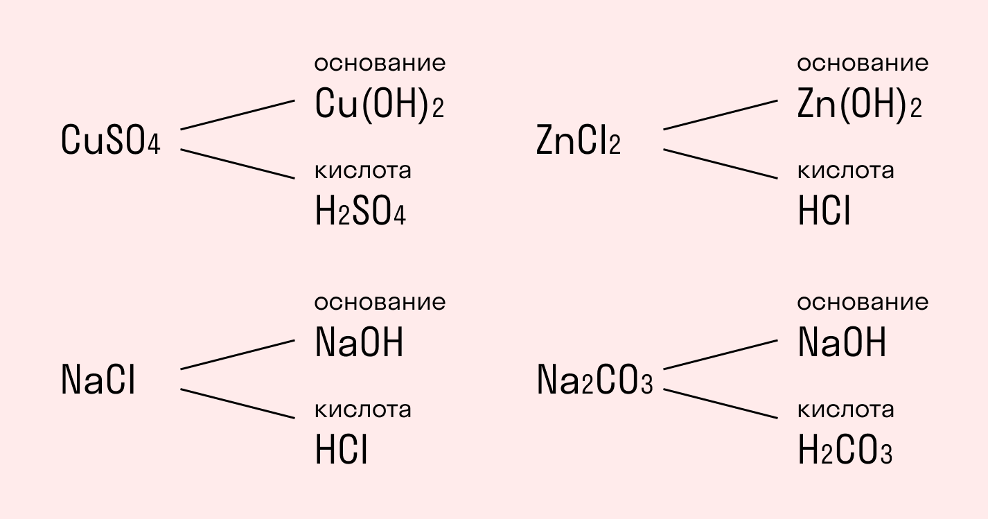 Начнем с того, что любая соль включает основание — амфотерный гидроксид, и кислотный остаток.