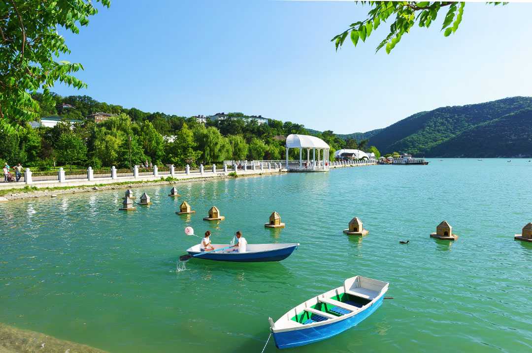 Озеро Абрау — самое большое в Краснодарском крае и славится чистой и на удивление тёплой водой. Фото: NsdPower / Shutterstock.com