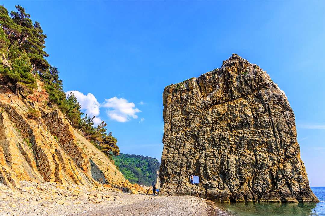 Ещё одна интересная природная достопримечательность — скала, напоминающая по форме четырёхугольное полотно, за что получила название Парус. Неподалёку отсюда находится хутор Джанхот, где в тени пицундской сосны укрылась дача Владимира Короленко — единственный в России дом-музей писателя (вход — 200 руб.). Именно в этом месте более 100 лет назад публицист писал рассказы и собственноручно посадил ливанский кедр.