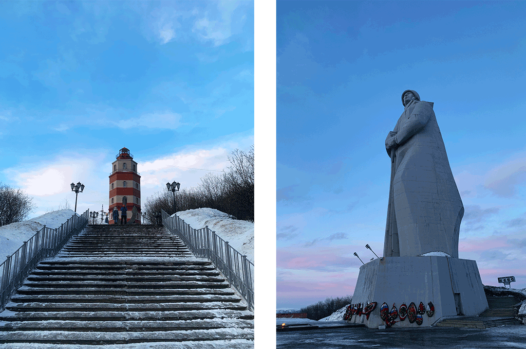 - увидеть все памятники героям войны, а также смотровые площадки с видами, а именно: «Самолётик» (памятник «Защитникам неба Советского Заполярья»), маяк с мемориалом Морякам, погибшим в мирное время, «Алёша» (мемориал «Защитникам Советского Заполярья в годы Великой Отечественной войны»);