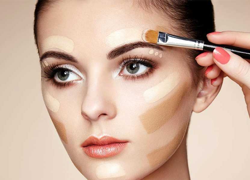 - Специальные кисти для визажа лица продаются в большом многообразии форм и материалов. Так, круглая служит для вбивающих движений, а плоская – для линейных. Наиболее аккуратное и незаметное покрытие создается именно этим способом, в том числе сочетая его с другими. С щетины легко удаляются остатки состава, расход средства небольшой. В качестве мольберта вновь используется тыльная сторона ладони.Успешно овладев техникой работы с тональным кремом, можно переходить к свето-теневой коррекции. Используя оттенки светлее и темнее основного фона, можно добиться визуального скульптурирования лица.