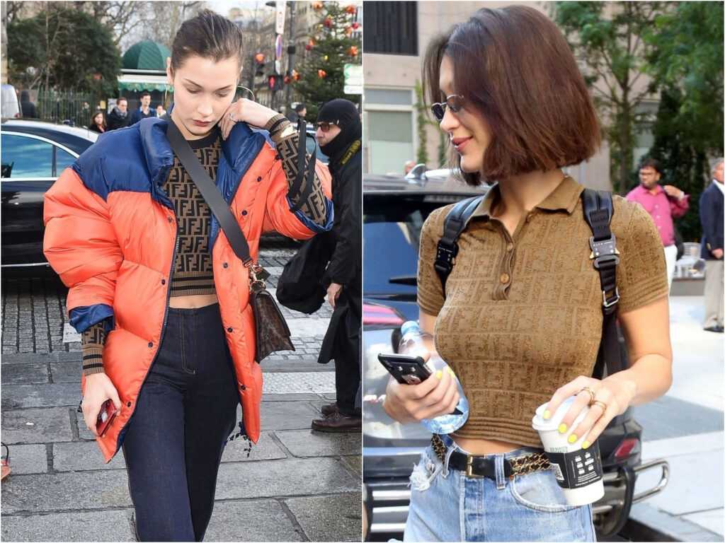 Популярная модель Bella Hadid с особым удовольствием дефилирует на модных показах бренда Fendi, предпочитая наряды и в обычной жизни. Девушка является поклонницей стиля sport-chic и с удовольствием миксует наряды различных стилевых направлений. Удобные топы, спортивные куртки, шорты и мини-юбки – любимые предметы гардероба модели.