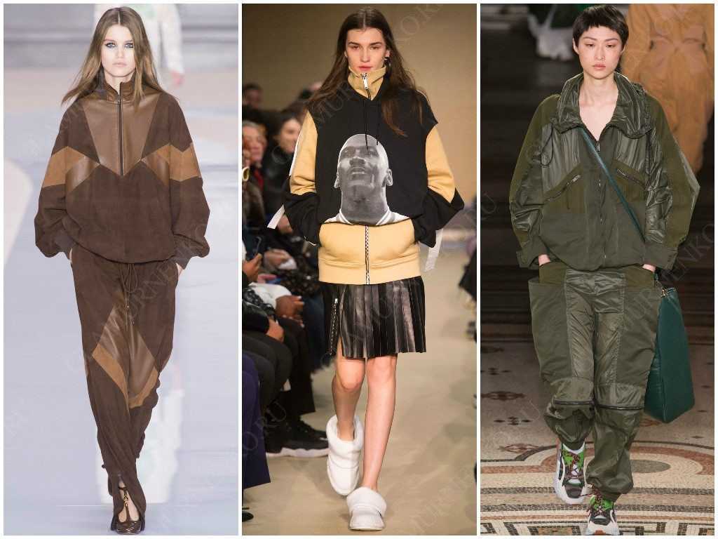 Похоже, спортивное направление настолько прочно укрепило свои позиции в моде, что в ближайшее время расставаться с ним не придётся. Тренд Athleisure, предполагающий ношение спортивной одежды в качестве повседневной, продолжает шагать по модным подиумам мира. В нынешнем сезоне элементы спортивной одежды дополнены дутыми куртками и пуховиками. Актуальны также толстовки, свитшоты из махры и флиса.