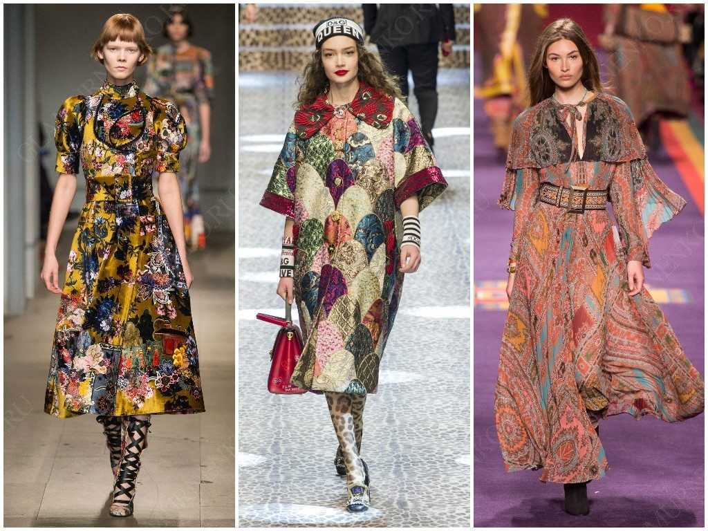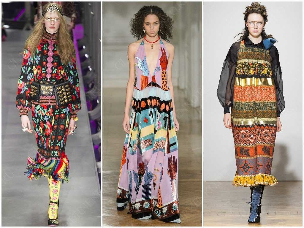 В последние пару лет дизайнеры вовсю эксплуатировали стилевое направление бохо. Но в нынешнем сезоне на смену бохо пришёл родственный ему фолк. Фолк демонстрирует разнообразие культур разных мировых континентов. Принты и узоры играют основную роль, помогая понять, культурным наследием какой народности вдохновился дизайнер. Именно фолку мы обязаны возвращением на модные подиумы лоскутной техники пэчворк