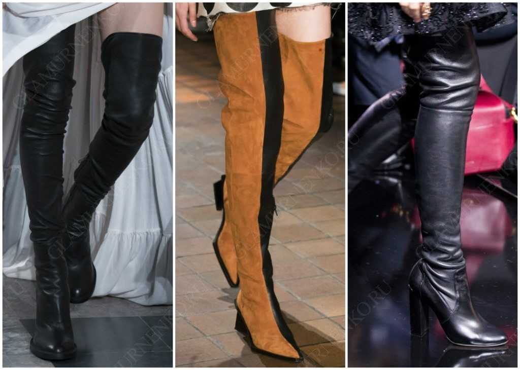 Ботфорты уже много лет подряд не сдают лидерских позиций, и сезон осень-зима 2017-2018 не стал исключением. Дизайнеры порадовали поклонниц ботфортов разнообразными моделями: с широким и узким голенищем, в облипку, наподобие чулок, и со складками, в гармошку, на шпильке, на плоском ходу и на устойчивом каблуке, из кожи, замши и текстиля