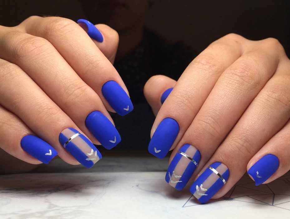 Короткий синий матовый маникюр: новые фото-идеи 2021-2022
