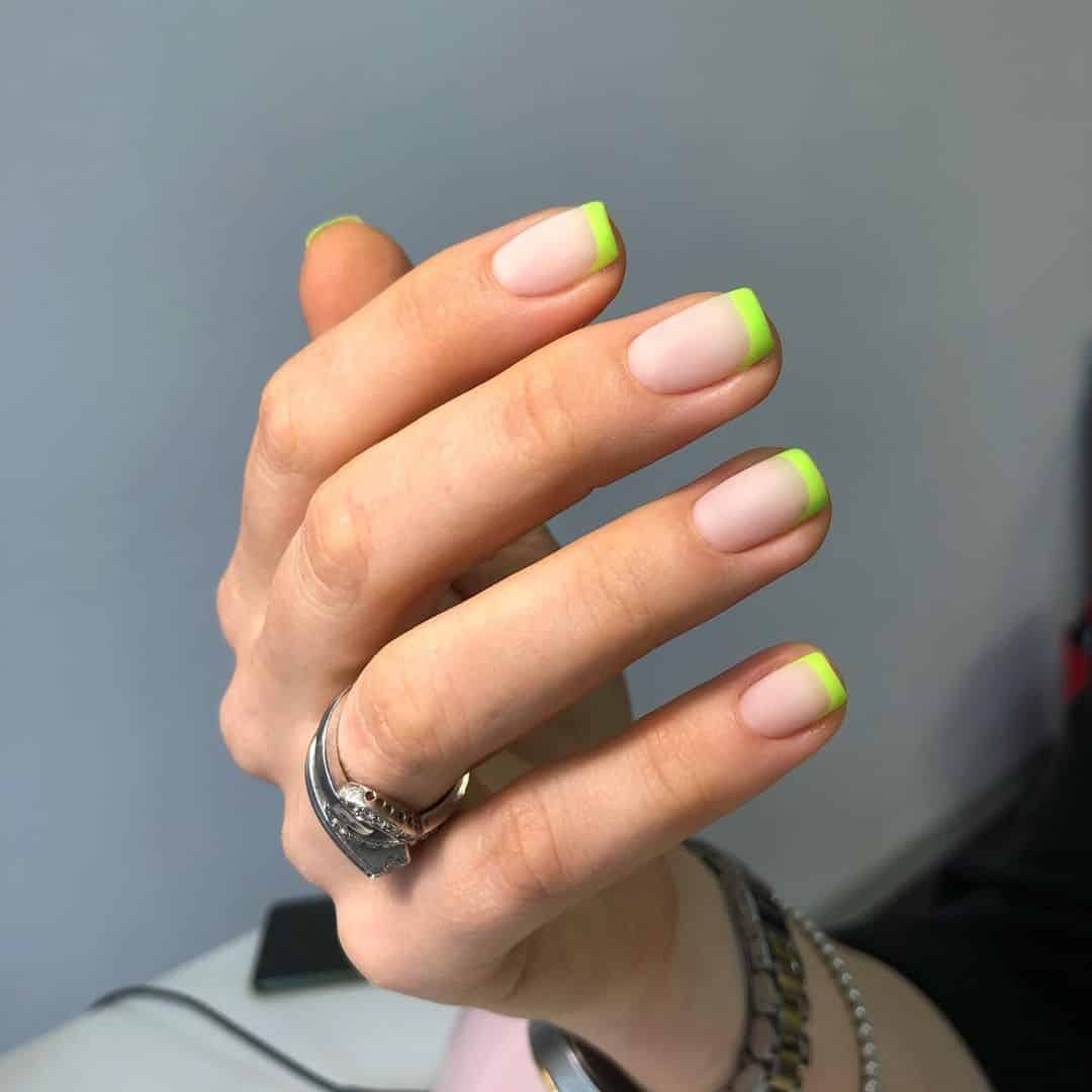 Матовое омбре можно исполнить как в ярких неоновых красках, так и в нюдовых цветовых решениях, переходящих из одного в два, в три и более цвета.