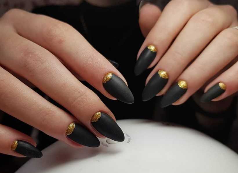 Матовый маникюр в черном цвете