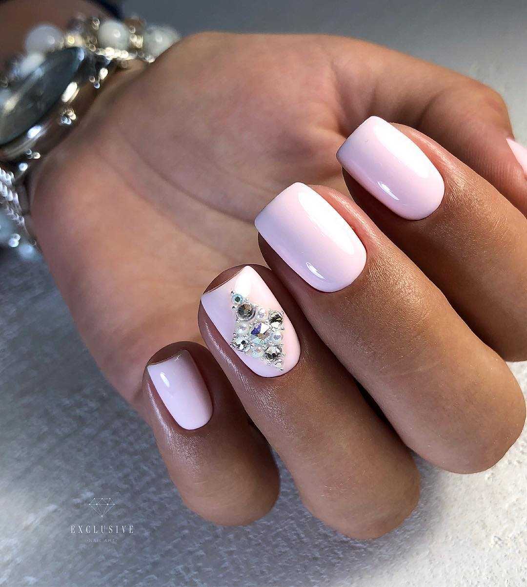Красивый розовый маникюр со стразами в нашей фото-подборке: