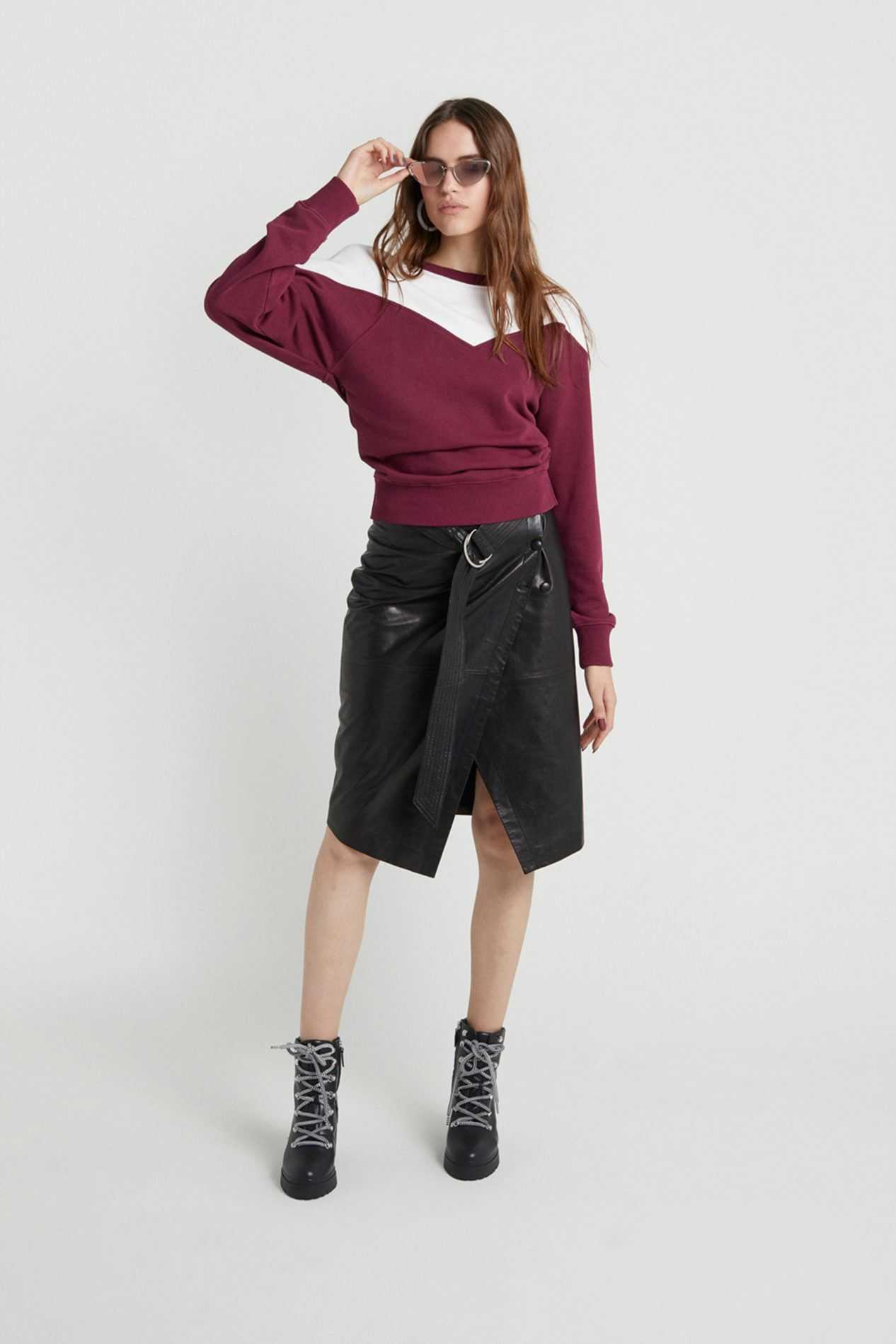 - юбки-карандаши прекрасно подойдут для создания стильных офисных луков. Причем, если тщательно познакомиться с осенне-зимними коллекциями 2021–2022, можно с полной уверенностью сказать, что на пике популярности окажутся цветные модели из кожи, которые имеют соблазнительные глубокие разрезы. Кстати, дизайнеры компании Chanel решили, что стоит отдать дань цвету марсал, а потому создали юбки в винном тоне;