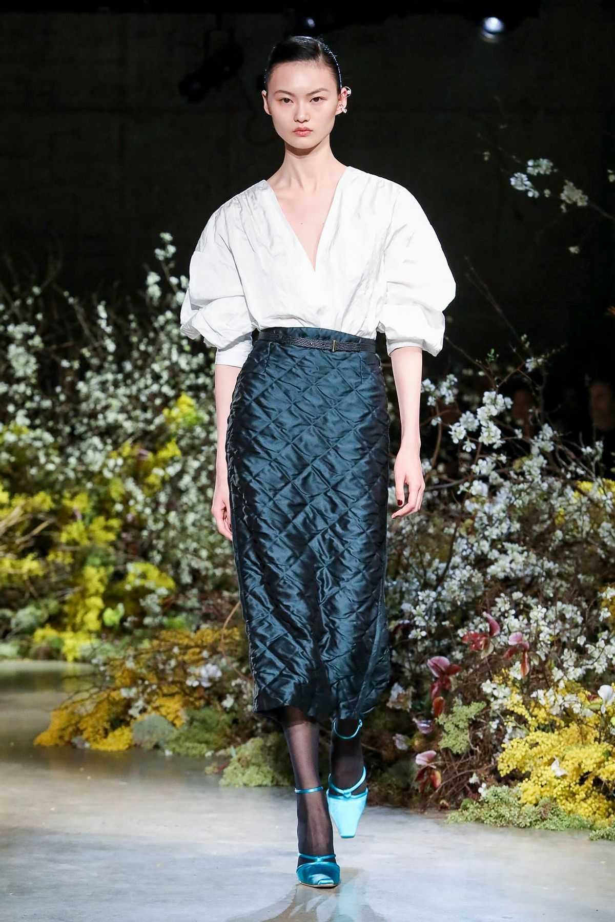 В модных показах осень-зима 2019-2020 юбка трапеция привлекала внимание своими узорами и декоративными элементами, многоярусным пошивом, нашивными украшениями. Самой необычной можно назвать плетеную модель от Y-Project