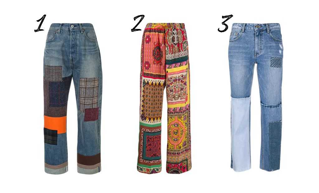 1 – джинсы Junya Watanabe, 2 – брюки Etro, 3 – джинсы SJYP