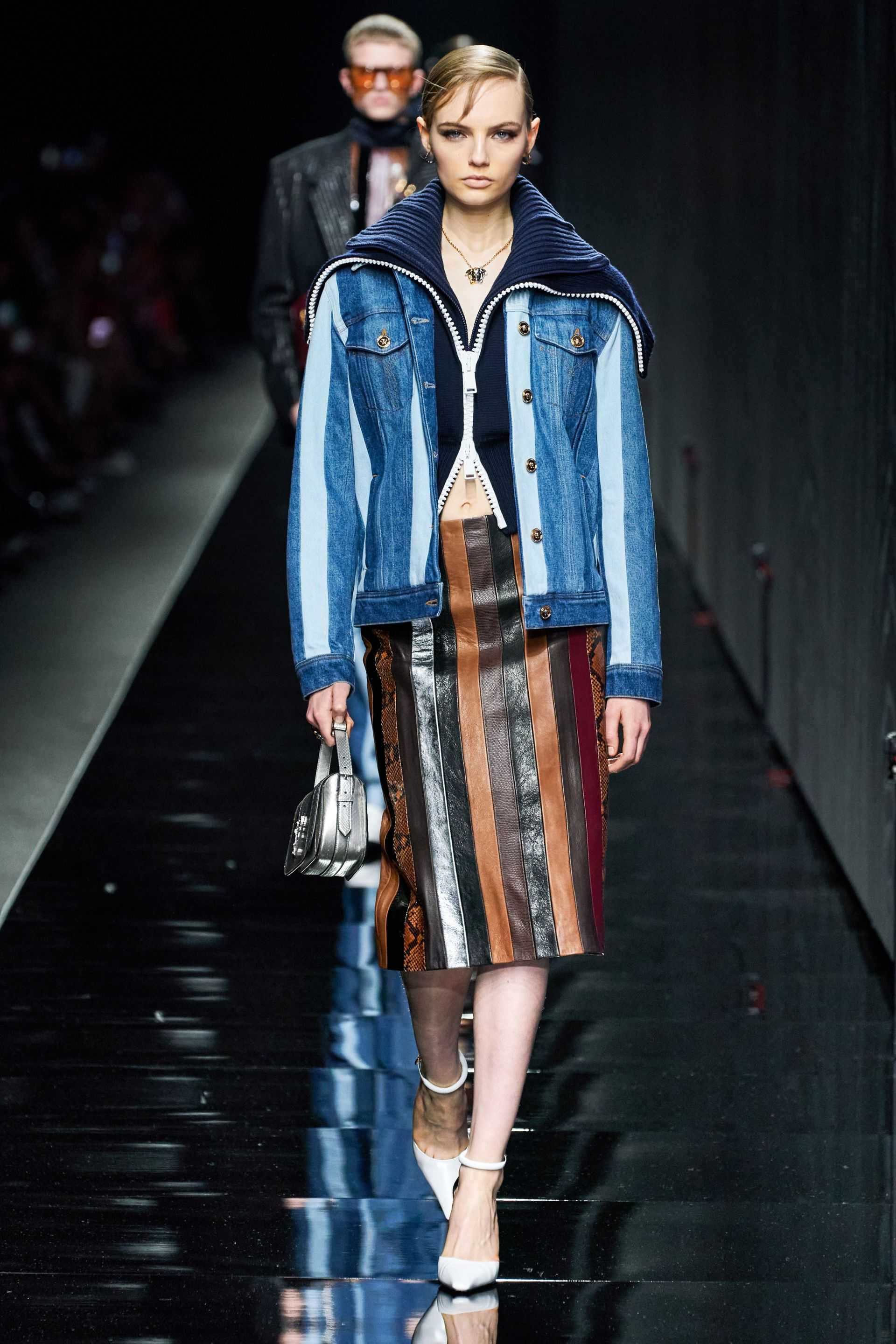 Создавать вещь в стиле пэчворк можно из совершенно разных тканей, однако на протяжении уже нескольких сезонов главными любимчиками дизайнеров остаются кожа и деним. Versace в этом сезоне решили обратиться к эстетике 80-х годов прошлого века и посвятить добрую половину коллекции осень-зима 2020 джинсам, юбкам и укороченным жакетам, но сшитым не из привычных лоскутков квадратной или треугольной формы, а из широких полосок, слегка отличающихся оттенками. Такие переходы от светлого к темному не только смотрятся очень эффектно, но и скрывают недостатки фигуры.