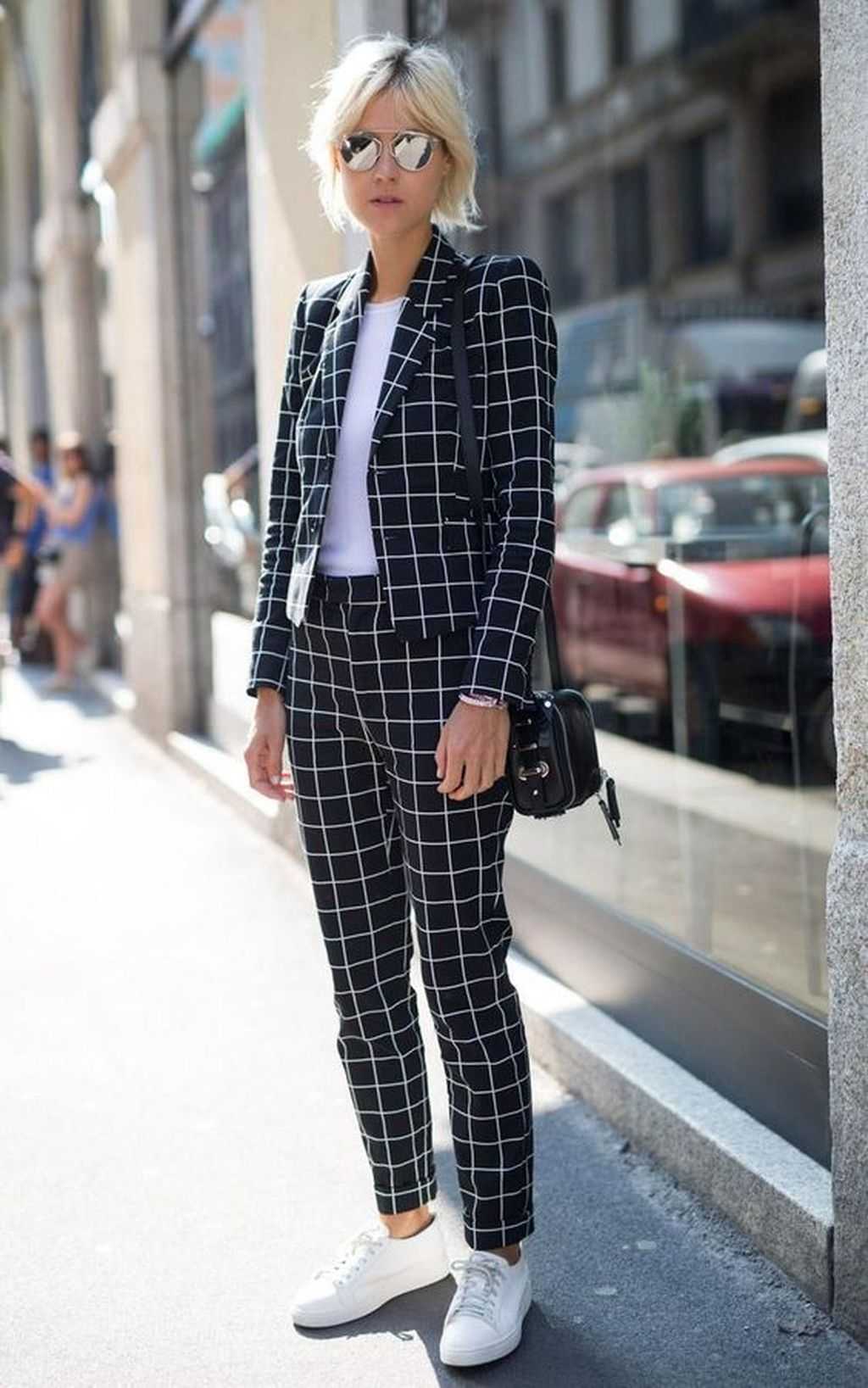 Офисный стиль разнообразит монохромная клетка, но нужно следить за тем, чтобы смешение не походило на шахматный принт. Хорошо, когда один цвет выступает в качестве фона, а другой используется для прорисовки узора.