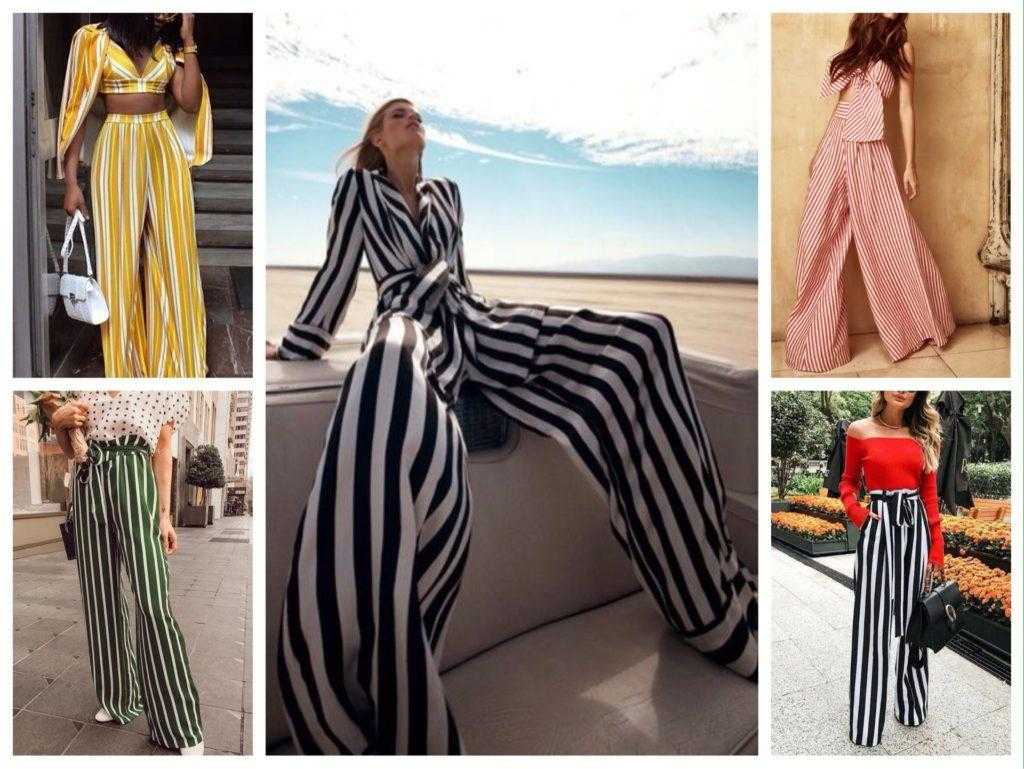 Интересно выглядят принтованные модели. Часто палаццо украшают этническими и геометрическими рисунками, лидером среди которых стала вертикальная полоска на брюках.