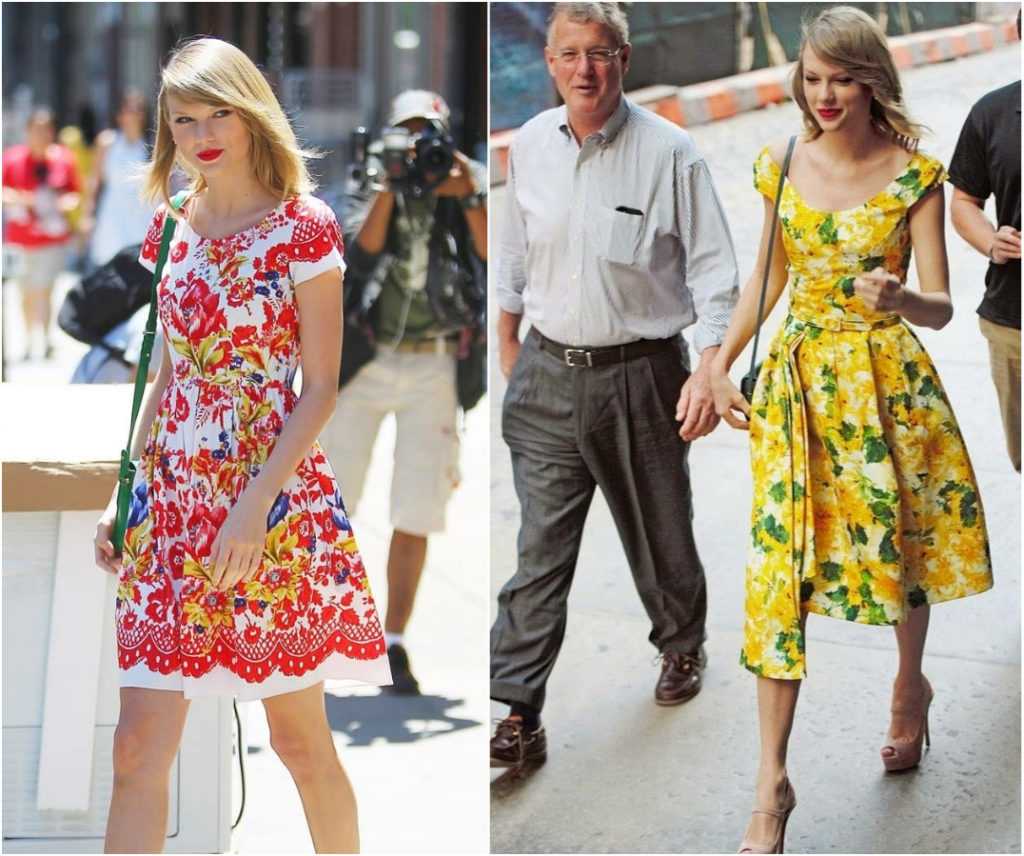 Тейлор Свифт предпочитает платья американского бренда Oscar de la Renta не только для светских выходов, но и для своих безупречных street look. Любимица Америки вновь вернула моду на романтические платья в цветочный принт. Гуляя по улицам Нью-Йорка, молодая певица выбирает элегантные цветочные платья американского модного дома с акцентом на талии и длины миди.