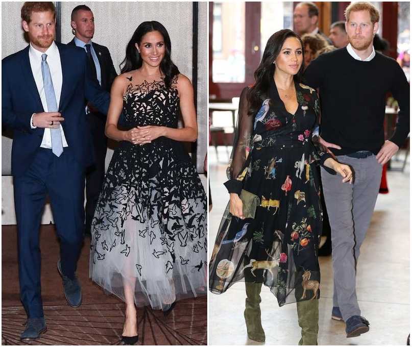 Бывшая Герцогиня Сассекская Меган Маркл во время официального визита в Австралию выбирает роскошное коктейльное платье Oscar de la Renta, расшитого черными птицами. В тот вечер супруга принца Гарри блистала на премии Австралийского географического общества. Очередной выбор наряда модного бренда Меган Маркл продемонстрировала на встрече в благотворительном фонде One25. Черное шифоновое платье было украшено райскими птицами, единорогами и другими сказочными животными.