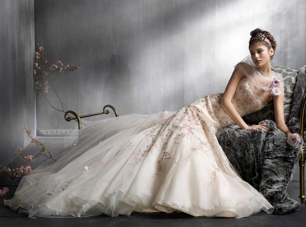 Невестам цветотипа «зима» (оливковая или холодно-розовая кожа, темные волосы) подойдут наряды серебристого, белого, розового цветов.