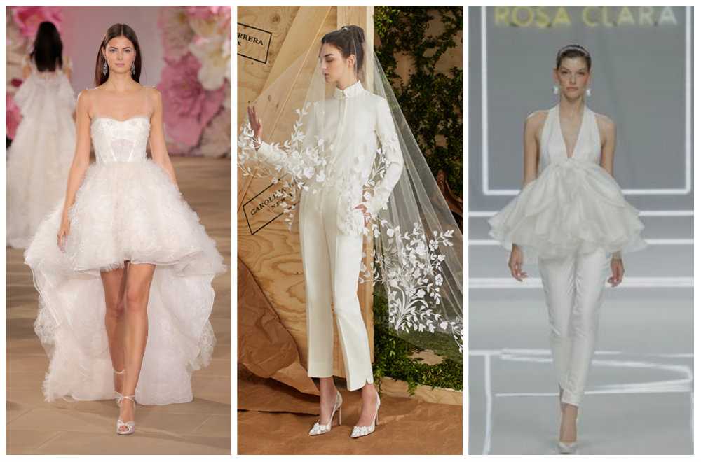 В этом году было много моделей с короткими свадебными платьями спереди а сзади удлинённые. Это выглядело очень даже благородно.