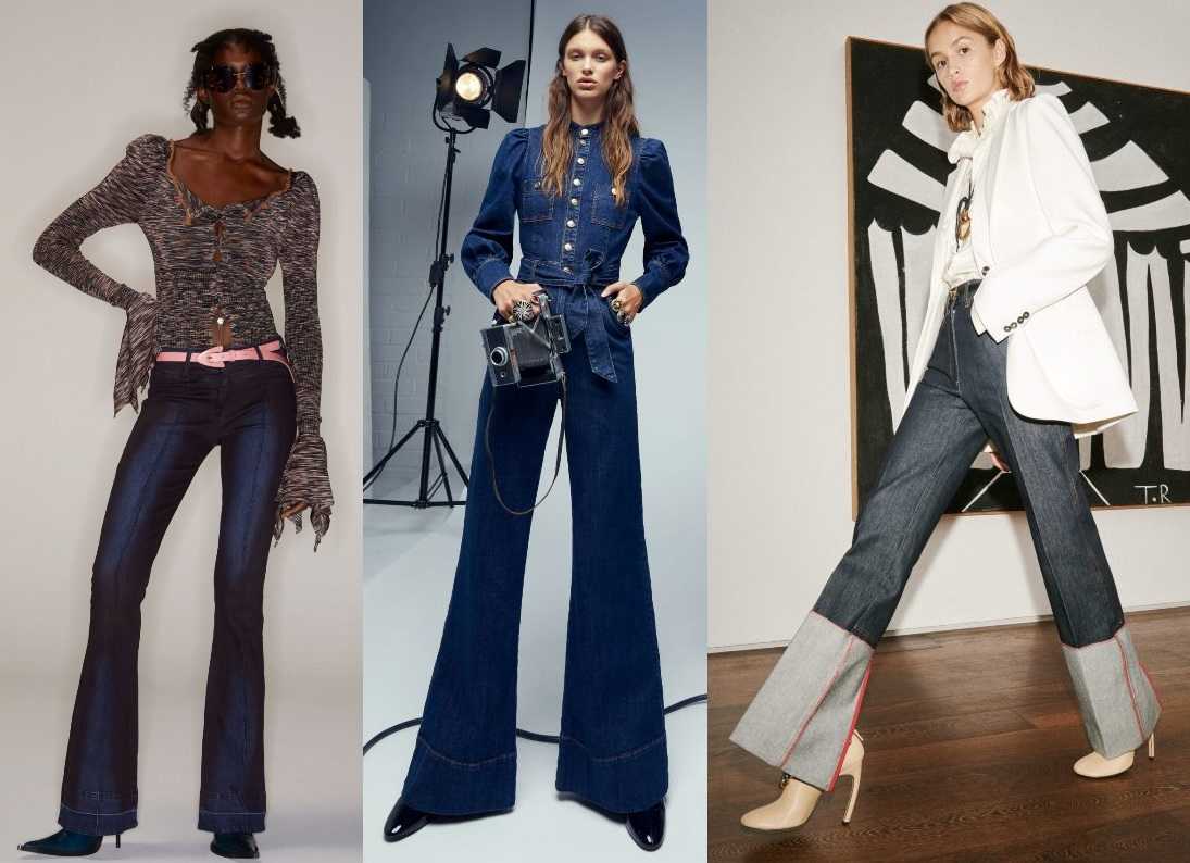 Женские джинсы, в том числе и брюки клеш, привлекают внимание разнойдлиной и шириной брючин. Такие модели стали основными в показах от Charlotte Knowles, Temperley London, Victoria Beckham