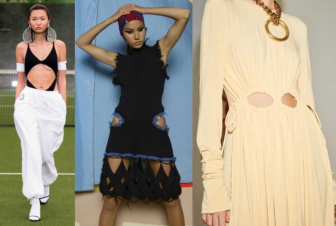 Еще одна характерная черта лондонской недели моды — это вырезы. Они могут быть разных форм и размещаться в области талии, бедер, на рукавах и плечах, спине.