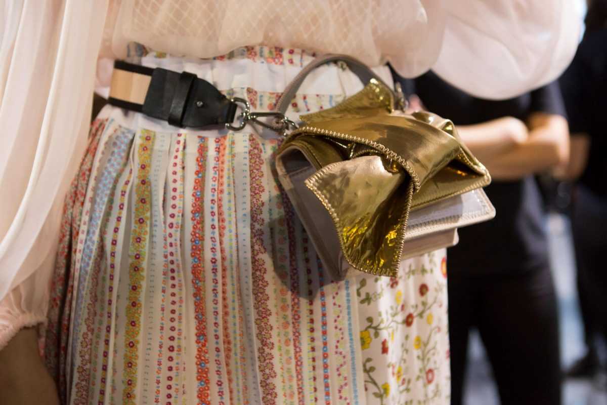 Комплектуя поясную сумку с платьем позволительно дать волю безудержной фантазии. Силуэтный разброс моделей макси и мини формата, разнообразие принтов и декора требуют соответствующих аксессуаров. В предложениях модных домов можно подобрать и элегантную сумку прямоугольной формы, и плавный полукруг, и задрапированный ридикюль.
