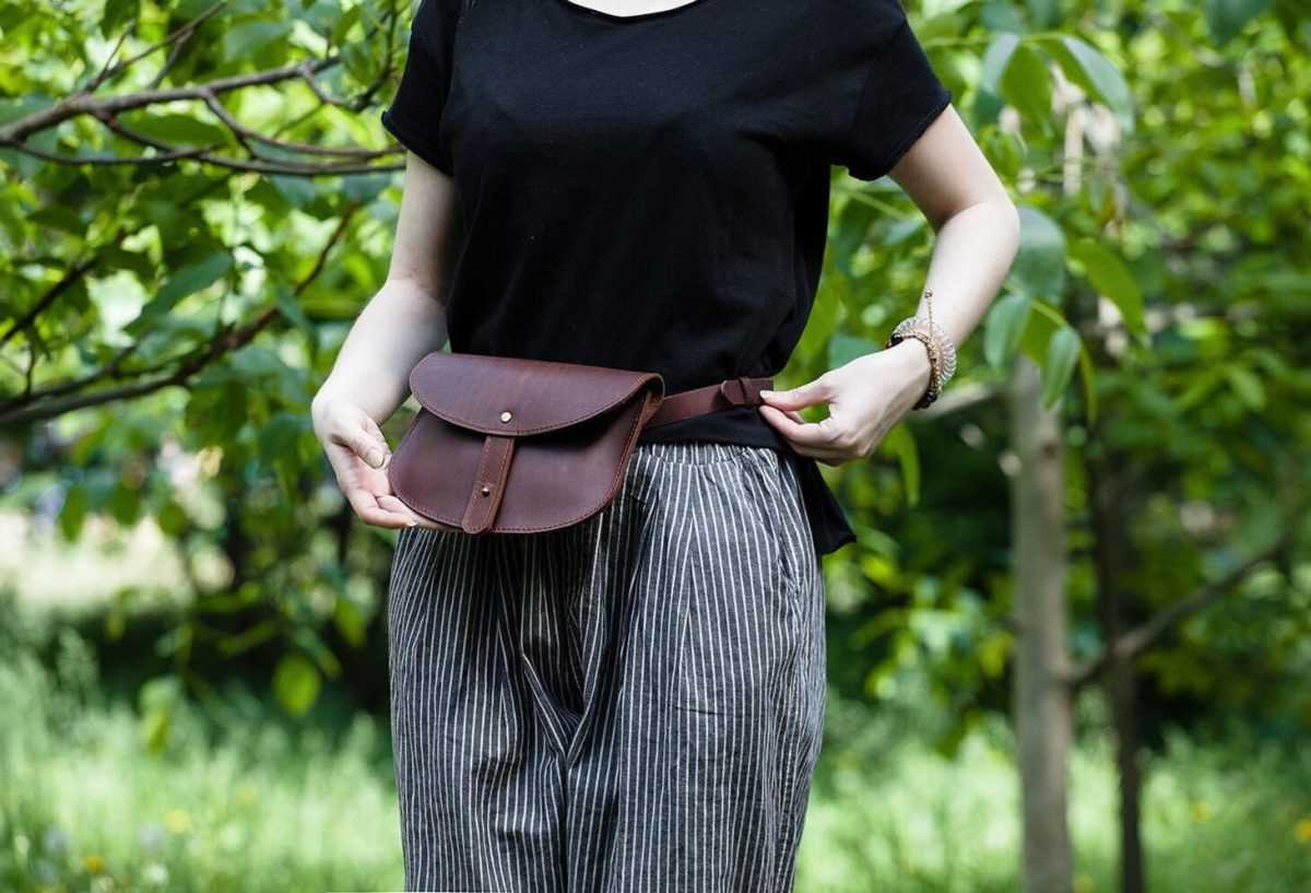 Поясная сумка хороша тем, что ее можно носить по-разному. Модели оснащены поясом с регулируемой длиной, благодаря чему изделие носят не только на поясе, но и часто перекидывают через плечо. В зависимости от способа ношения аксессуара, будет меняться образ в целом.