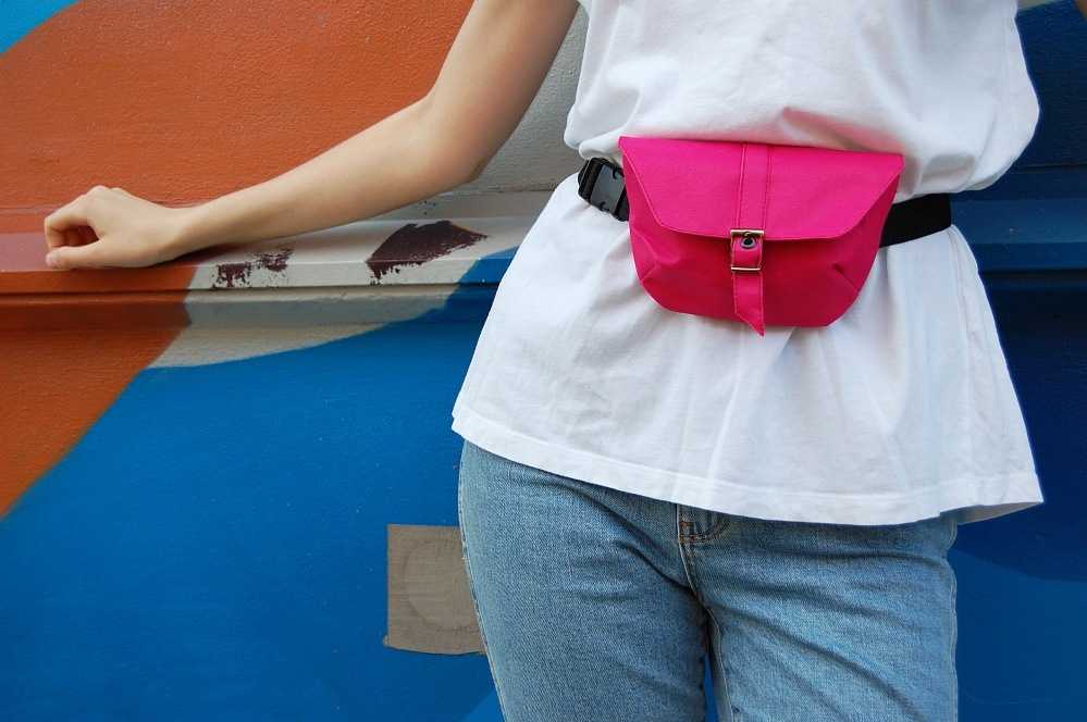 - всевозможные варианты ярких цветов, которые можно носить как через плечо, так и на поясе.