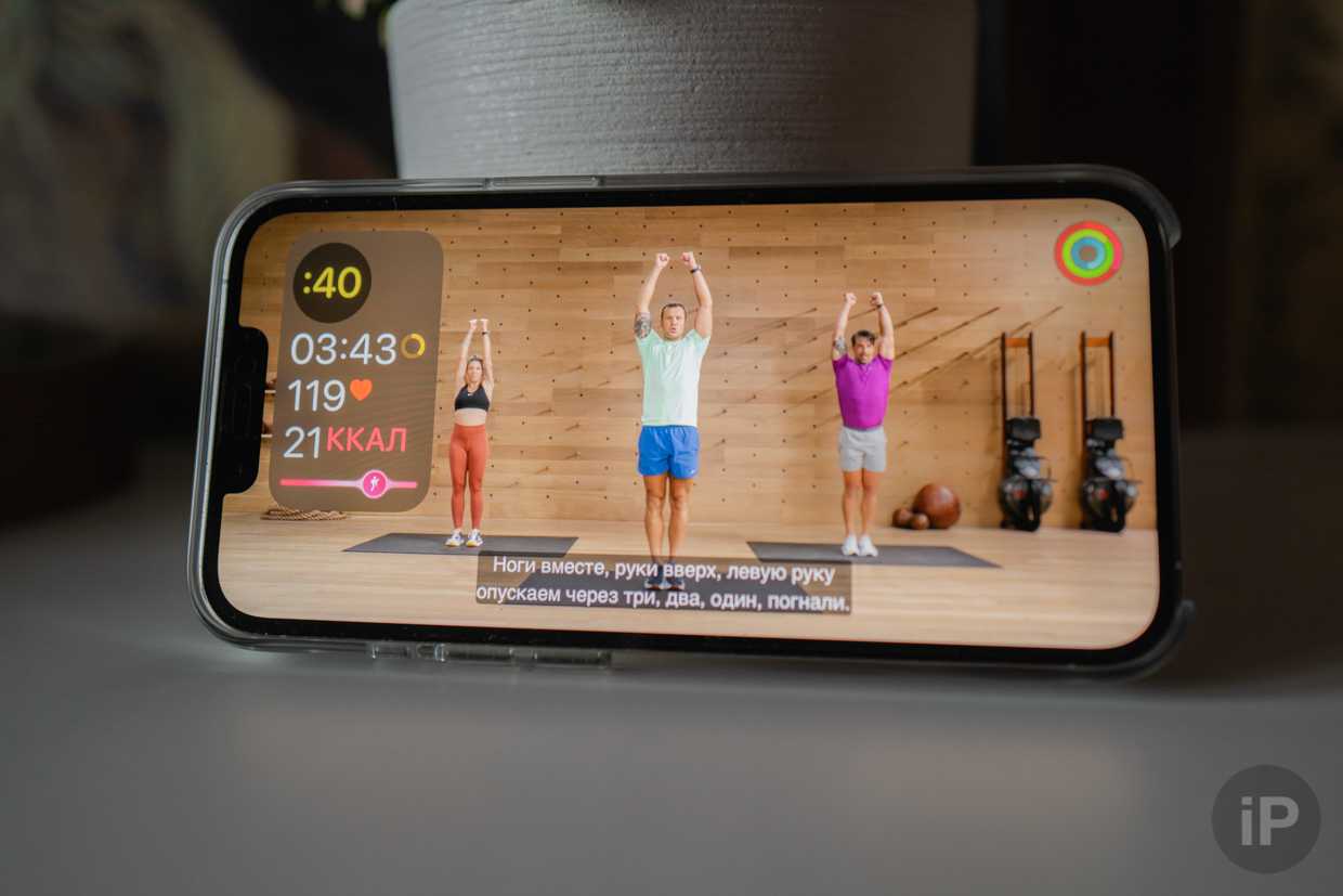 Во время занятий программа берёт данные с Apple Watch, чтобы через строку состояния показать, насколько эффективно вы тренируетесь.