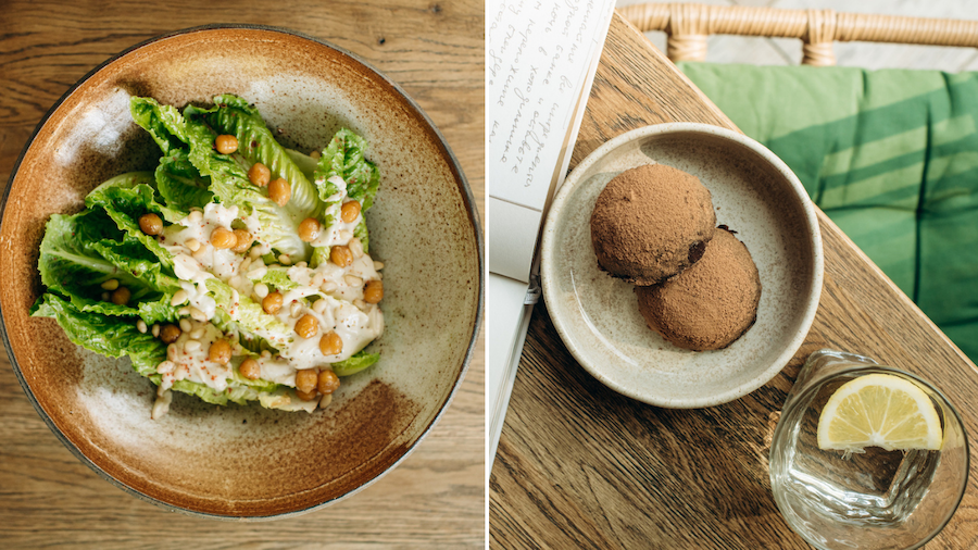 Проект расположен на Кутузовском проспекте на территории Friends Social Club и делит пространство с магазином Veter Shop, корнером сухоцветов Lavender Castle и редакцией Veter Magazine. «Без рецепта» – это стильное кафе с полезной едой и правильным кофе для тех, кто следит за здоровьем, но не отказывает себе во вкусе. В небольшом, но разнообразном меню классные завтраки, питательные обеды и легкие ужины с пометкой «можно после 18:00». Есть такие интересные блюда, как домашний авторский хумус с овощами (300 рублей), веганский цезарь (530 рублей), тунец татаки в кокосовом соусе (780 рублей), большой зеленый салат с креветками и диким рисом (890 рублей) и многое другое. На завтрак, который по будням длится до 14:00, а по выходным до 16:00, здесь делают гречку с яйцом-пашот и соусом песто (370 рублей), овсянку с дорблю и жареной грушей (450 рублей), сырники из топленого творога и жареными яблоками (490 рублей) и, конечно же, авокадо тост из ремесленного хлеба с зеленым салатом (450 рублей)