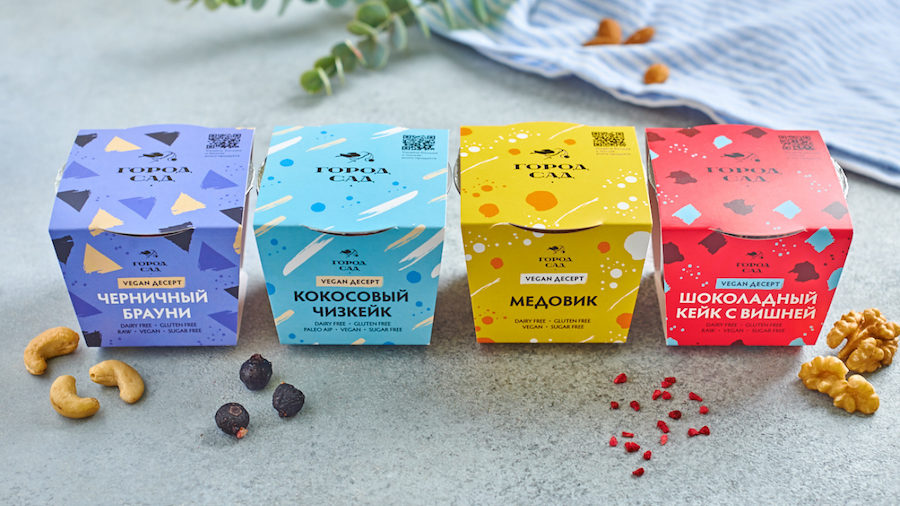 Обратите внимание на линейку фирменных продуктов «Город-Сад» – есть очень крутые и интересные позиции вроде шоколадного кокосового йогурта (190 рублей), кокосовой сгущенки (590 рублей) или веганских десертов (179 рублей) – сыроедческий шоколадный кейк с вишней – фантастически вкусный!