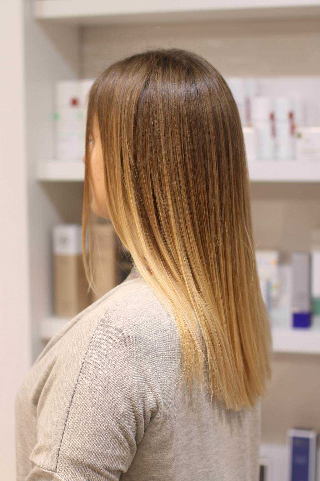 Плавный переход из темного тона у корней к светлому — у кончиков волос