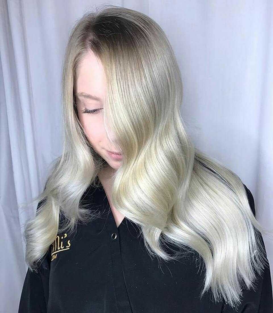 Платиновый блонд с холодным подтоном. Главное украшение таких волос – это перламутровые переливы, которые создают невероятно стильный и обворожительный образ.