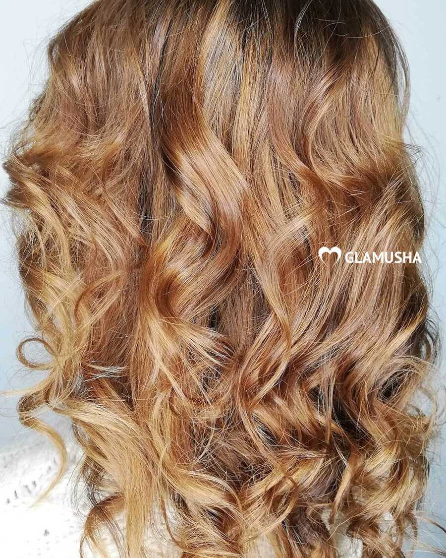- Обладательницам темных и ярко-рыжих волос следует осветлить волосы на несколько тонов или провести колорирование в случае русых оттенков, иначе легкий карамельный цвет не сможет прокрасить шевелюру.