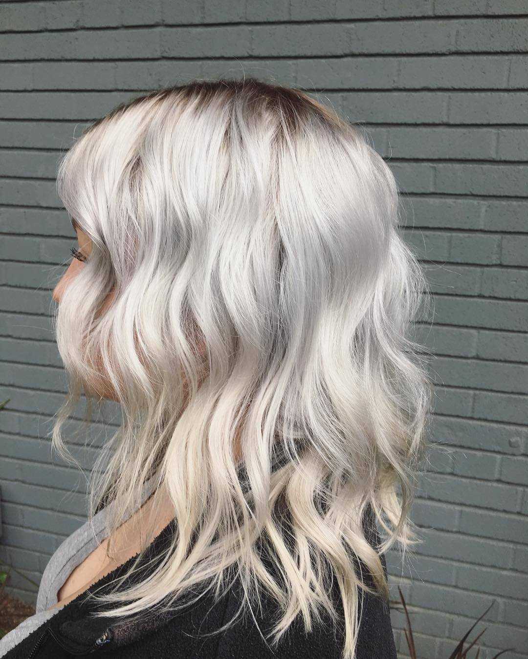 Платина с холодным подтоном, внешне напоминающая седину. Кстати, именно пепельный цвет в этом сезоне пользуется повышенным спросом среди модниц.