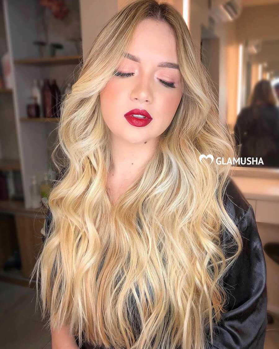 Очень модный вариант окрашивания волос в теплых тонах, который актуален в 2021 году. Такой оттенок блонд хорошо смотрится на волосах средней длины. Золотистые тона всегда пользуются огромной популярностью, ведь они смотрятся невероятно роскошно и стильно.