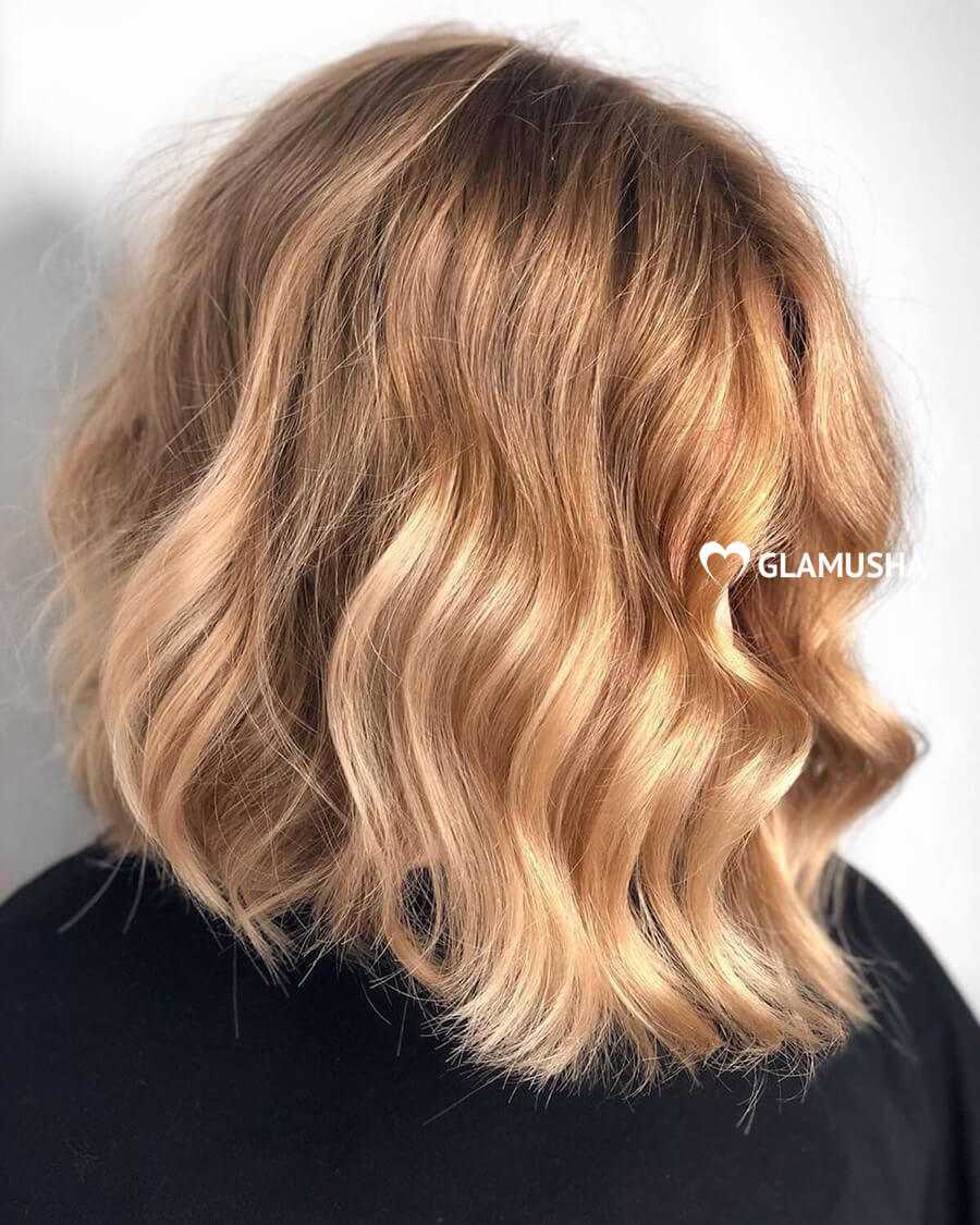 Выбирая подходящие теплые тона для окрашивания на средние волосы, следует обратить внимание на этот вариант оттенка блонд. Он природный, идеально подойдет женщинам с русыми или со светлыми волосами