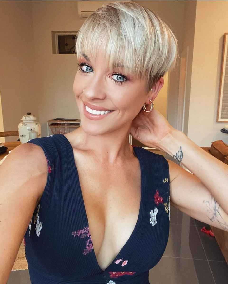 Пикси отличается огромным количеством плюсов, в первую очередь это укладка без использования специализированных инструментов. Ухаживать за стрижкой легко, она не требует ежедневного мытья и укладки. Челка здесь уместна будет абсолютно любая: удлиненная, косая, короткая.