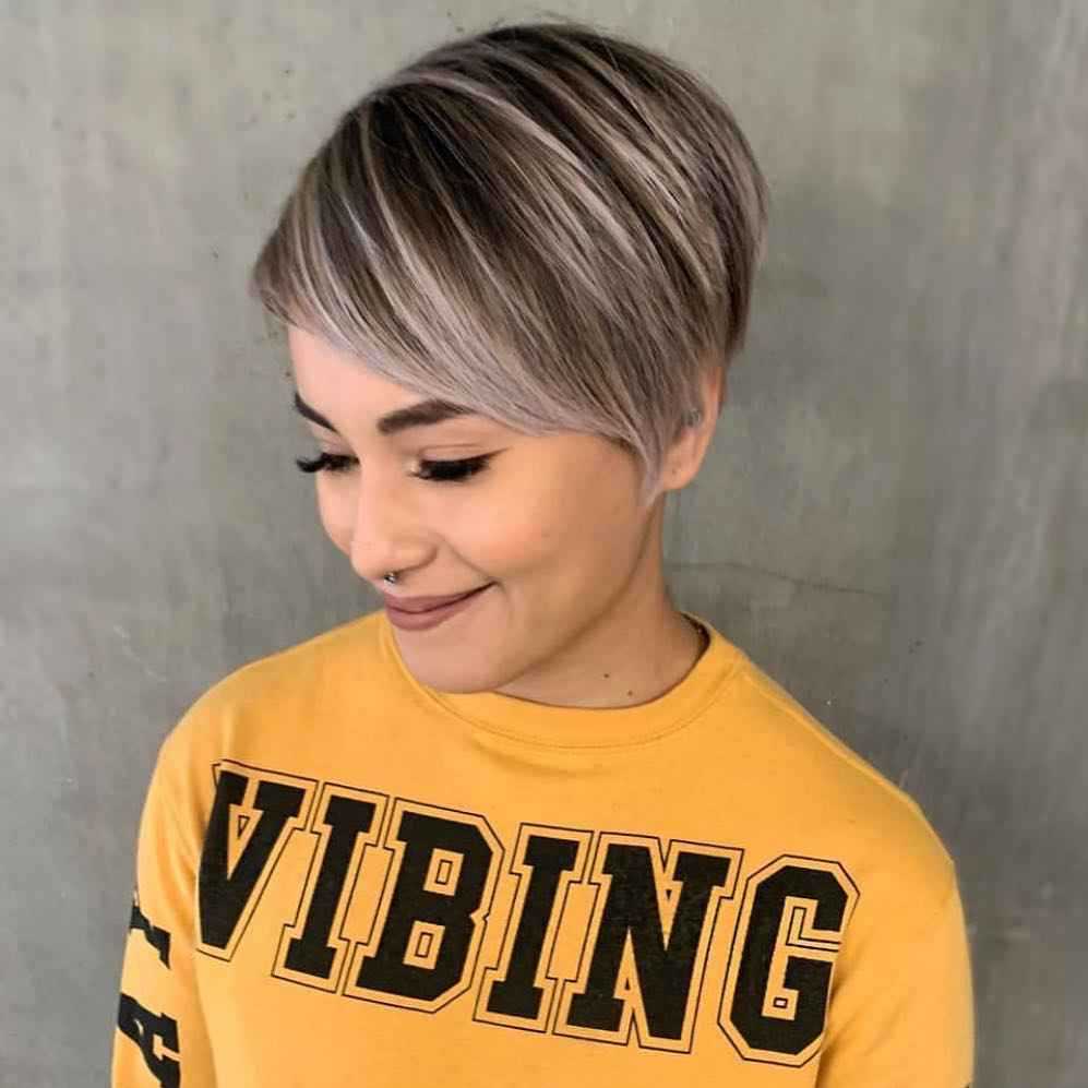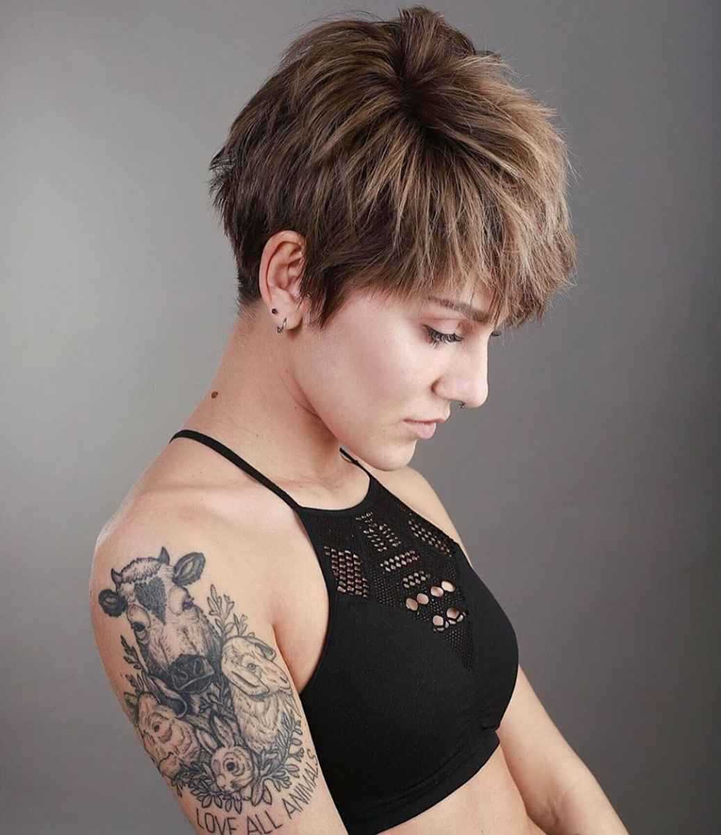 Создать некую взъерошенность можно с использованием геля или лака. Как выглядит стрижка пикси на коротких волосах в 2021 году, фото продемонстрирует во всей красе.