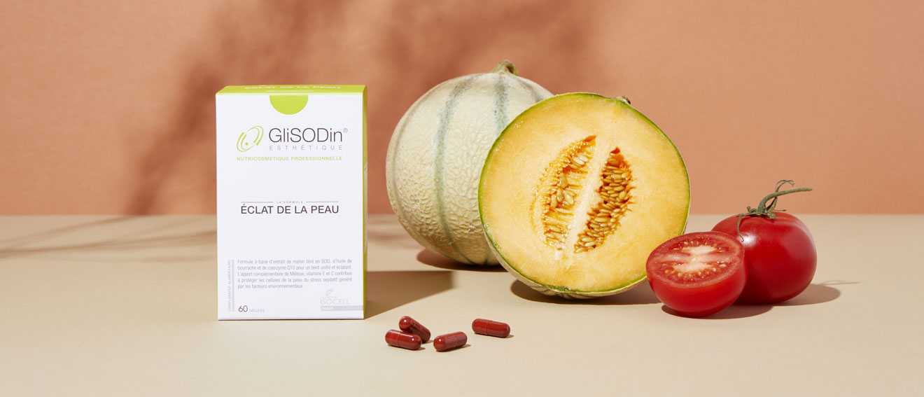 GliSODin натуральная биологически активная добавка из Франции на основе супероксиддисмутазы — самого мощного антиоксиданта нашего организма. В комбинации с омега-6 — полиненасыщенной жирной кислотой, которая входит в структуру клеток кожи, укрепляет стенки сосудов, ликопином — мощным антиоксидантом, который накапливается в коже и защищает от негативного воздействия ультрафиолетовых лучей, экстракт ацеролы — природный источник витамина С, который укрепляет стенки сосудов и защищает клетки от ультрафиолетовых лучей.