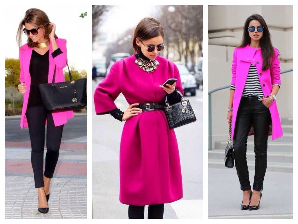 Бежевый плащ, накинутый на платье оттенка фуксия, сделает образ менее дерзким. Также можно классическое пальто цвета карамели дополнить броским аксессуаром.