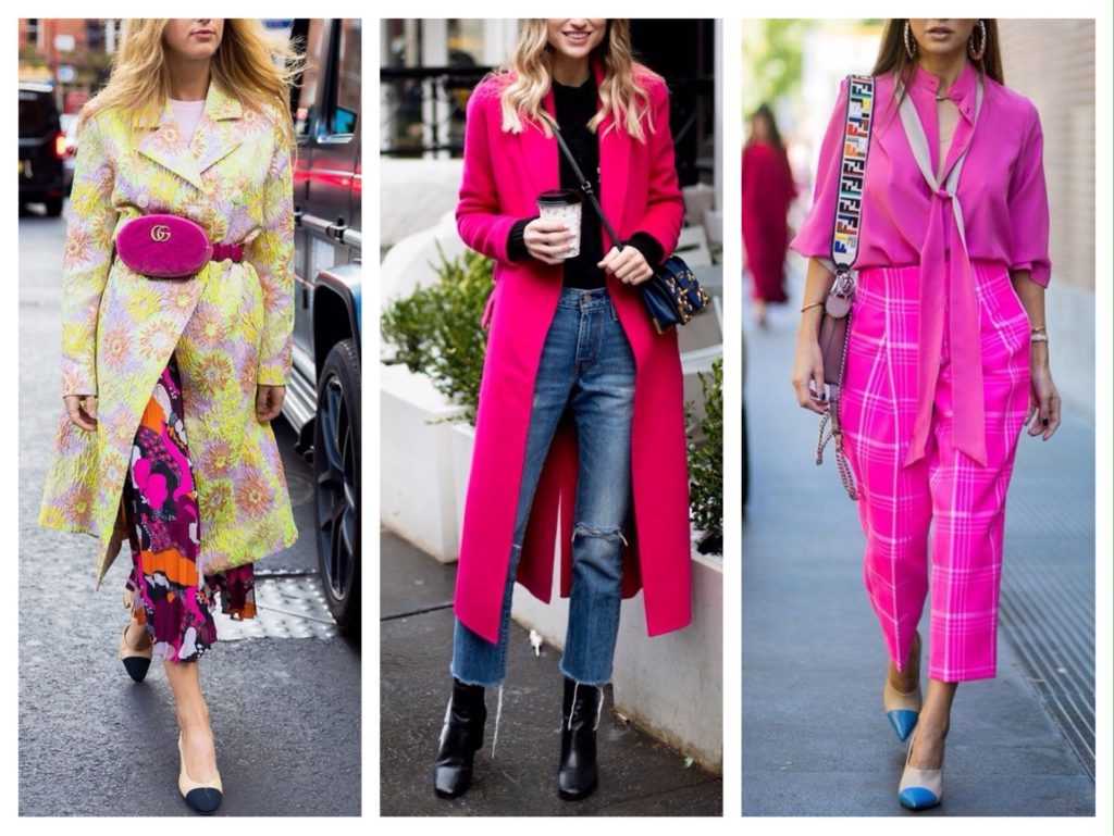Важно комбинировать оттенки: подбирать к малиновому тону синие джинсы, к пурпурному платью – зеленый или желтый жакет и т.д