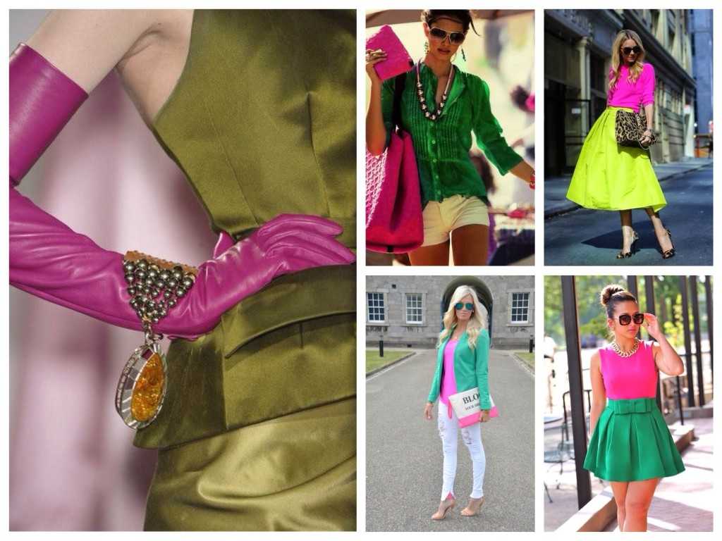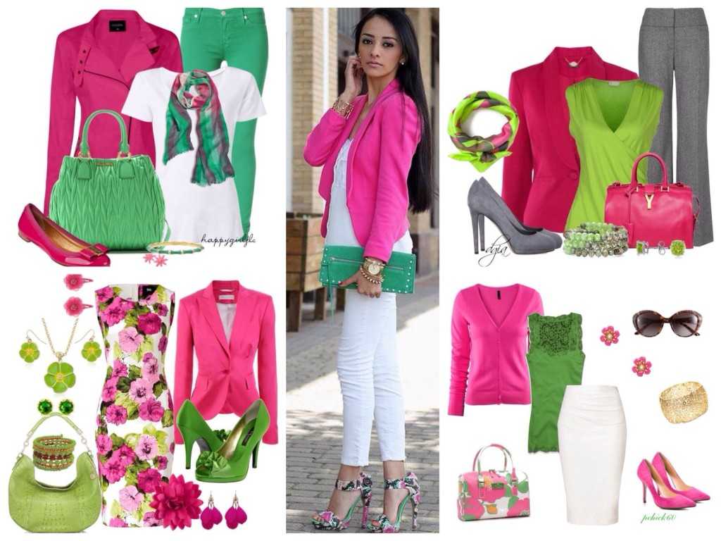 Лучше всего с фуксией смотрятся контрастные оттенки.
